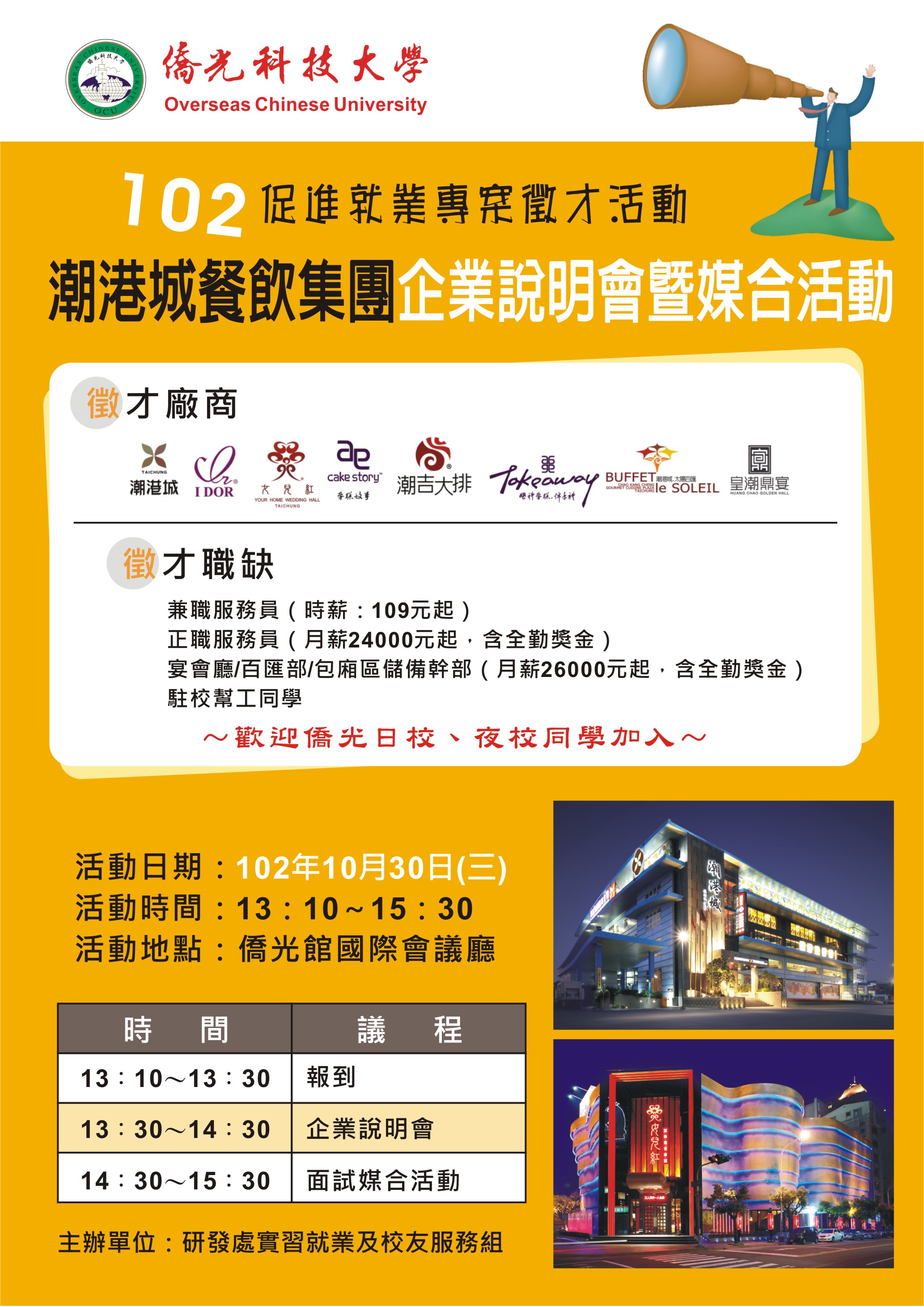 102促進就業專案徵才活動-潮港城餐飲集團企業說明會暨媒合活動 |
