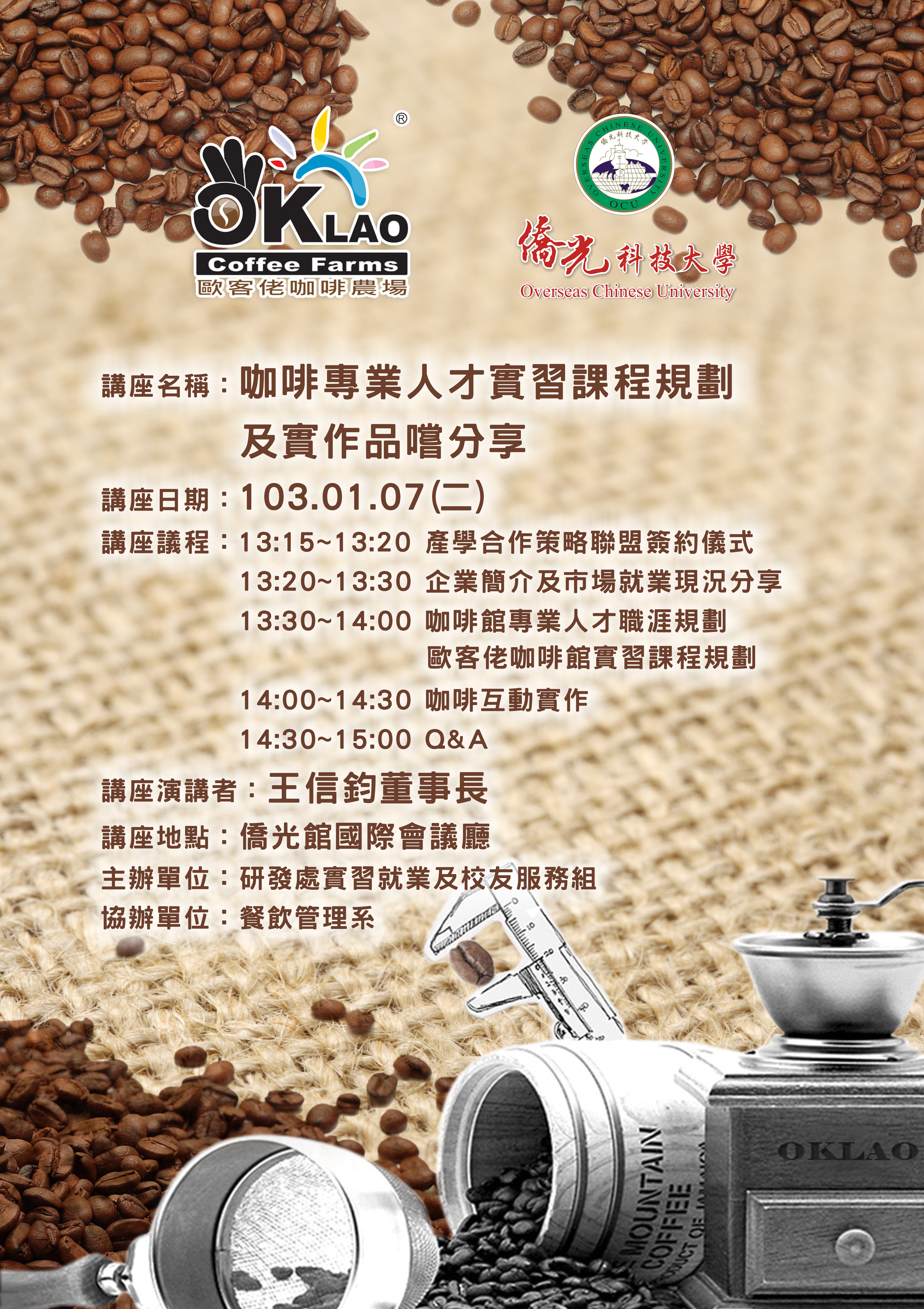 13:30~14:30 咖啡館專業人才職涯規劃及歐客佬咖啡館實習課程規劃