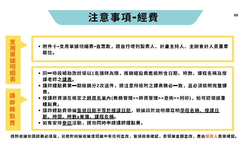 一、就業學程計畫-經費項目核銷注意事項