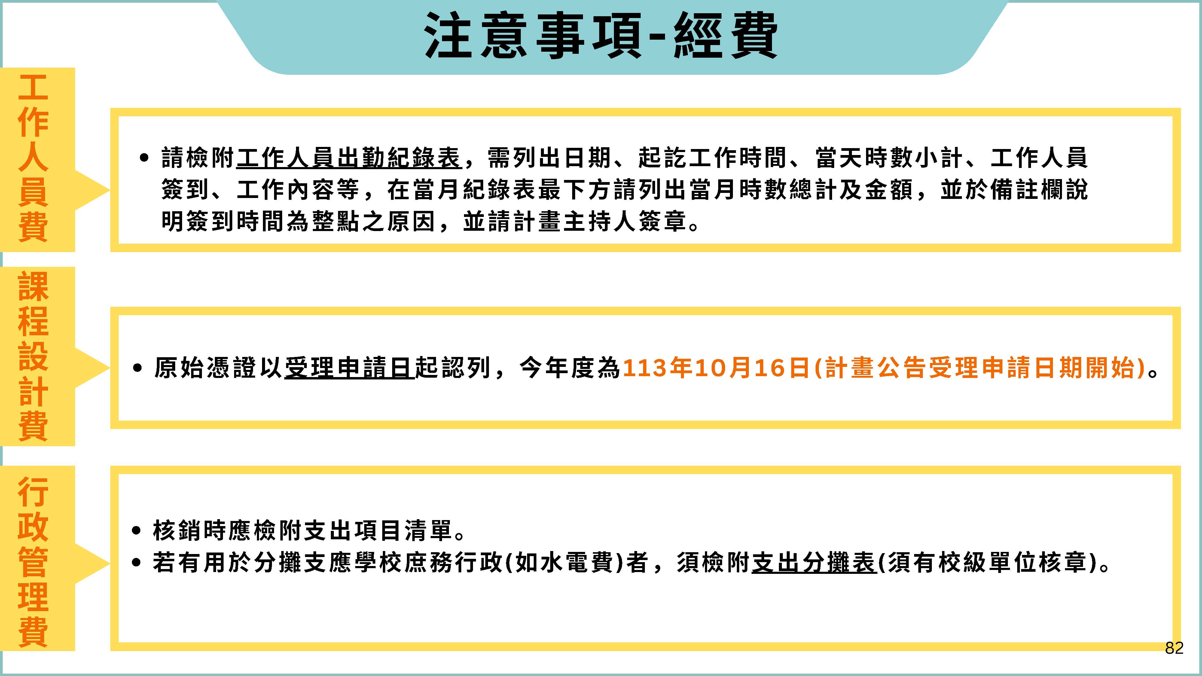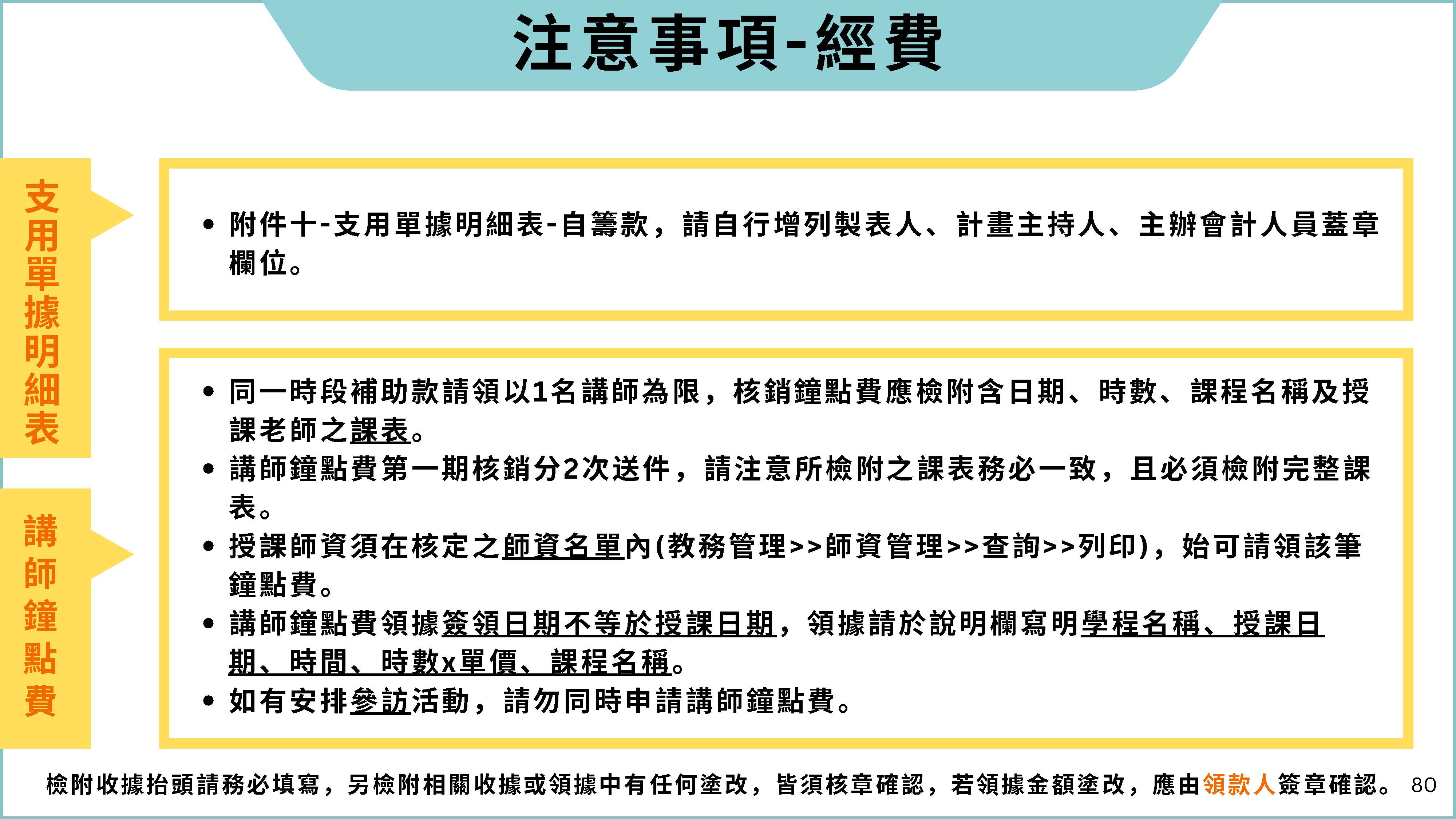 二、除了中分署特別要求的格式外,其餘依本校制式格式核銷,參考範本如下,如校內格式有更新以相關公告為主。