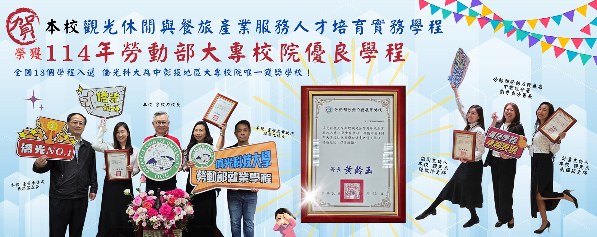 標題:📢賀!觀光休閒與餐旅產業服務人才培育就業學程(113學年)榮獲「優良學程」
