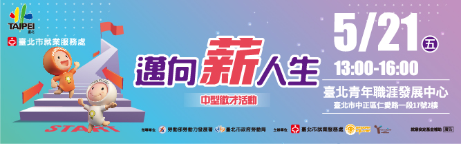 因應「嚴重特殊傳染性肺炎」疫情仍未趨緩,臺北市就業服務處5/21「邁向薪人生」徵才活動自即日起~5 /31改採線上媒合方式辦理,詳情請上台北就業大補帖網站!