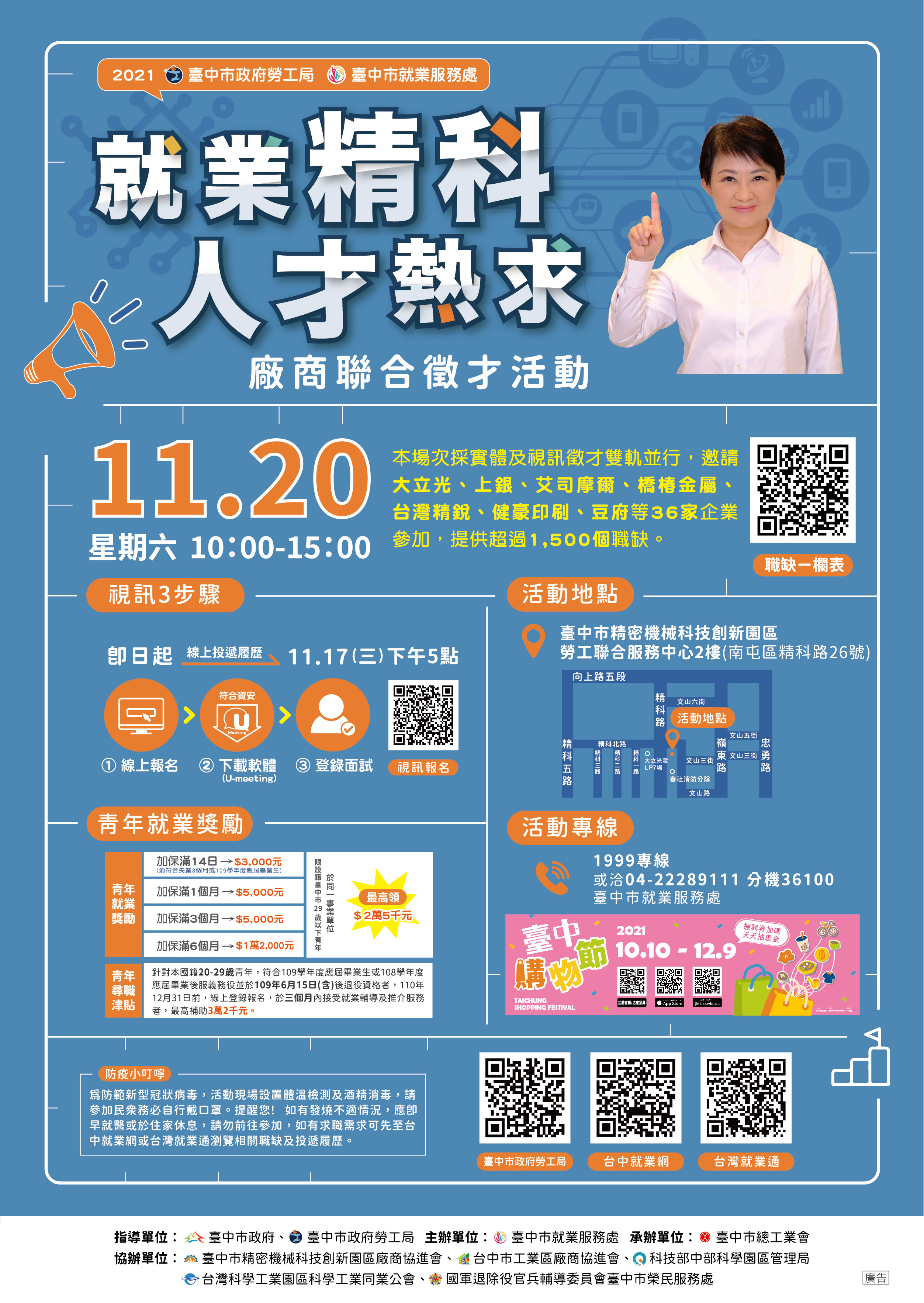 | 標題:臺中市就業服務處公告2021/11/20「就業精科 人才熱求」聯合徵才 |