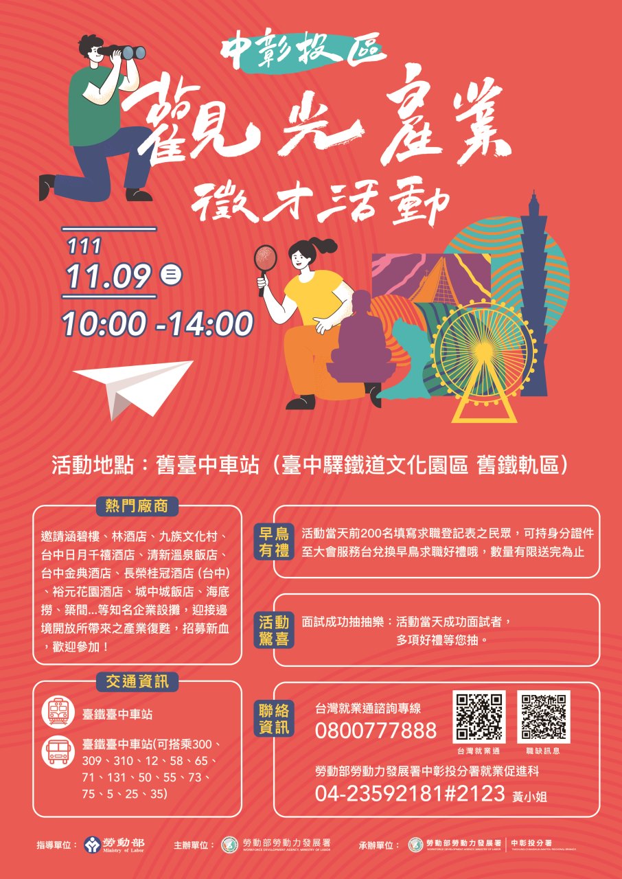 年底最大場--中彰投區觀光產業徵才活動即將展開!