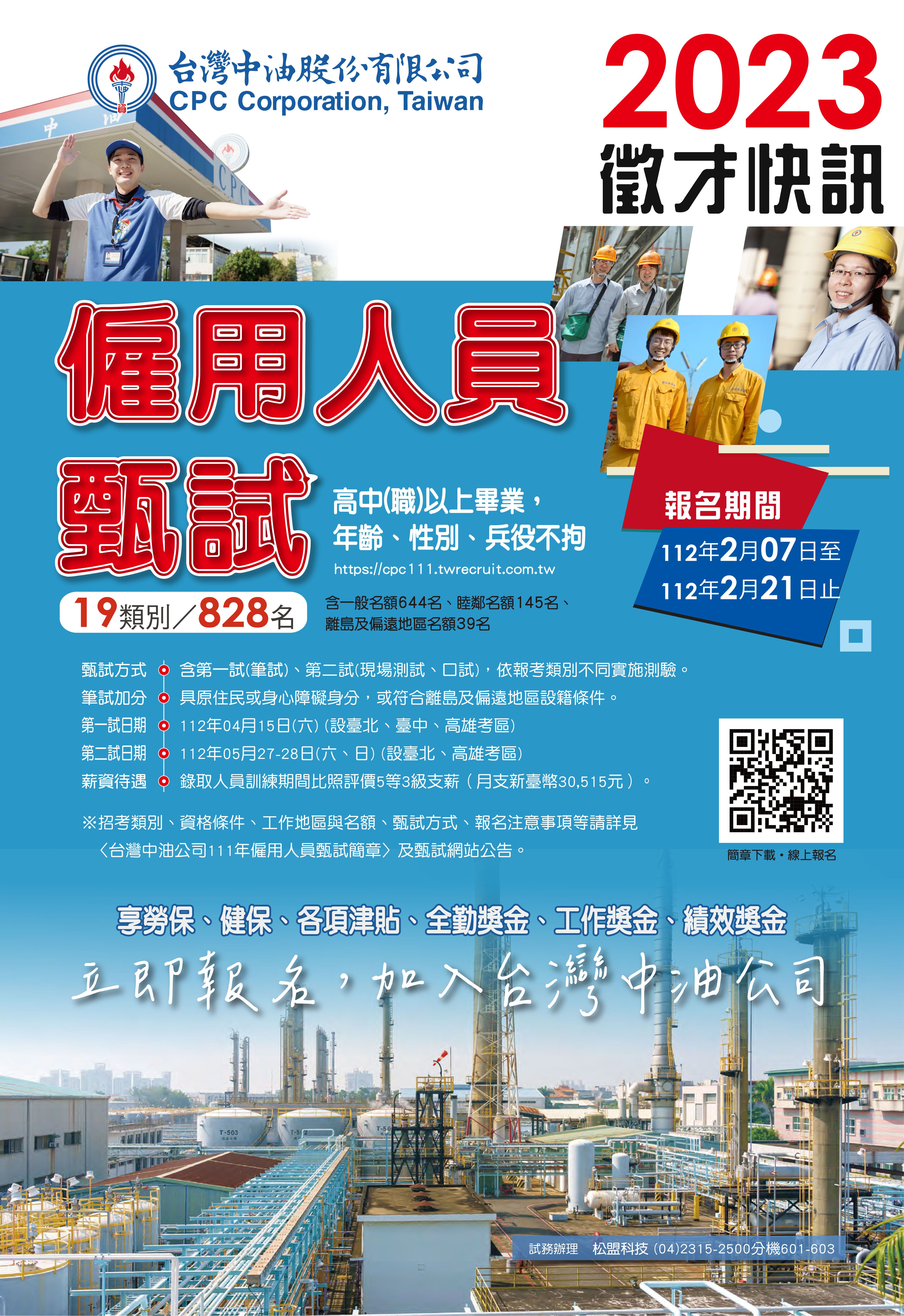 簡章取得方式:即日起於甄試網站(https://cpc111.twrecruit.com.tw)公告,電子檔免費下載,不另販售紙本簡章。 |