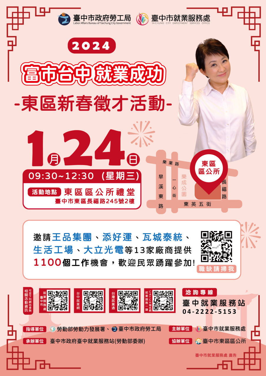 🎉🎉🎉臺中市政府2024「富市台中 就業成功」東區新春徵才活動🎉🎉🎉