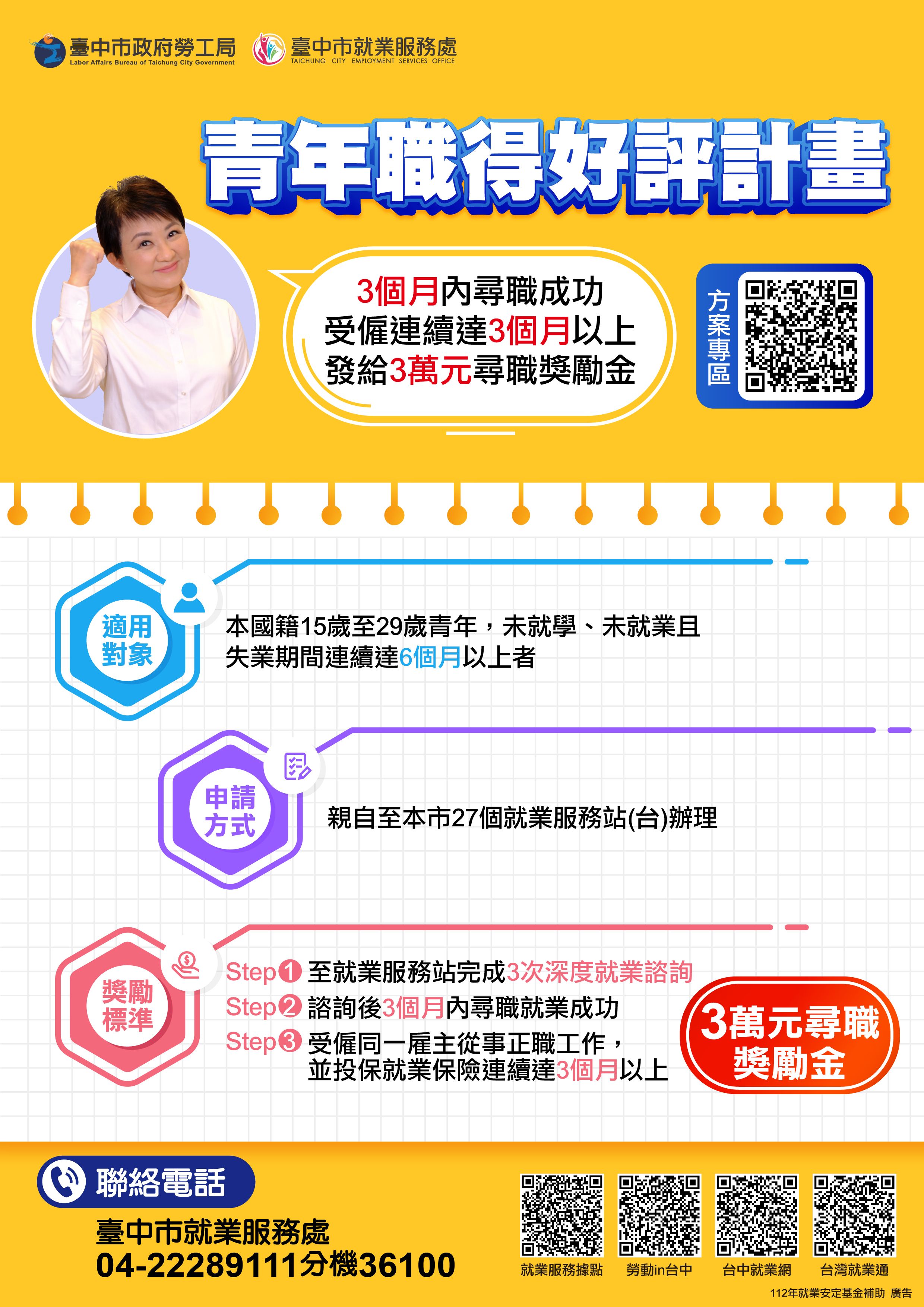 標題:【就業】臺中市政府勞工局「青年職得好評計畫」