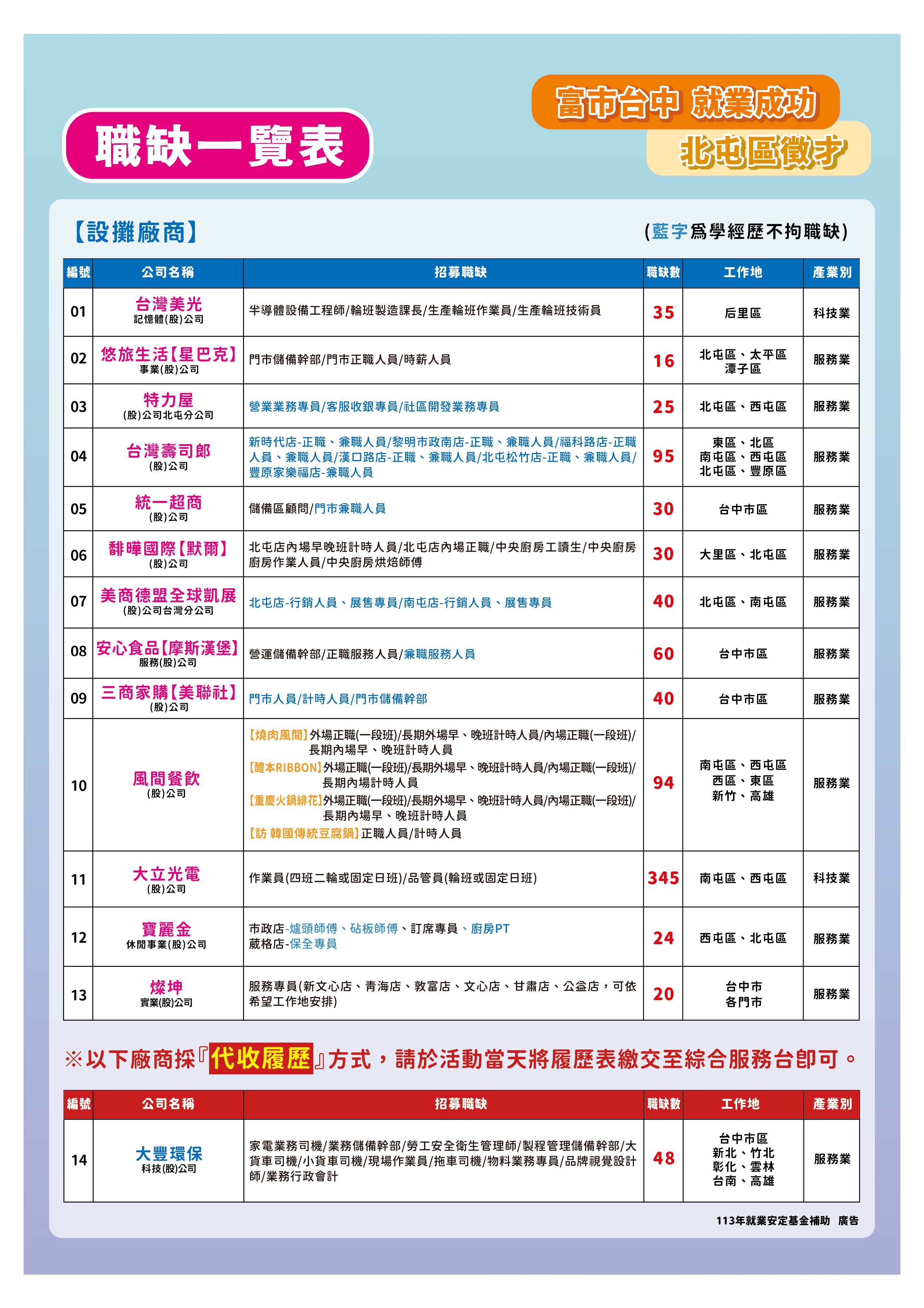 標題:【就業】臺中市政府2024「富市台中 就業成功」北屯區徵才