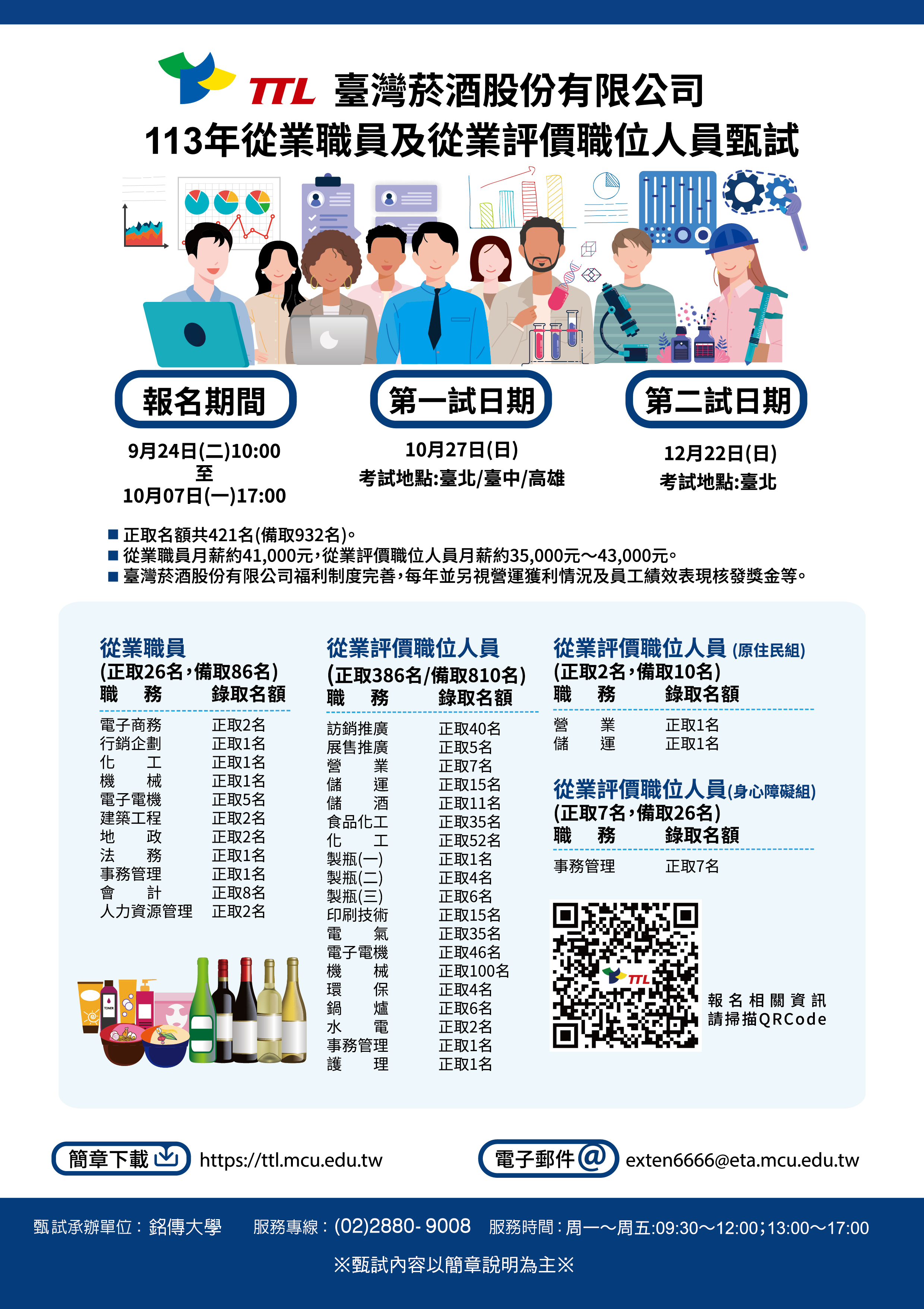 | 標題:【就業】臺灣菸酒股份有限公司113年從業職員及從業評價職位人員甄試 |