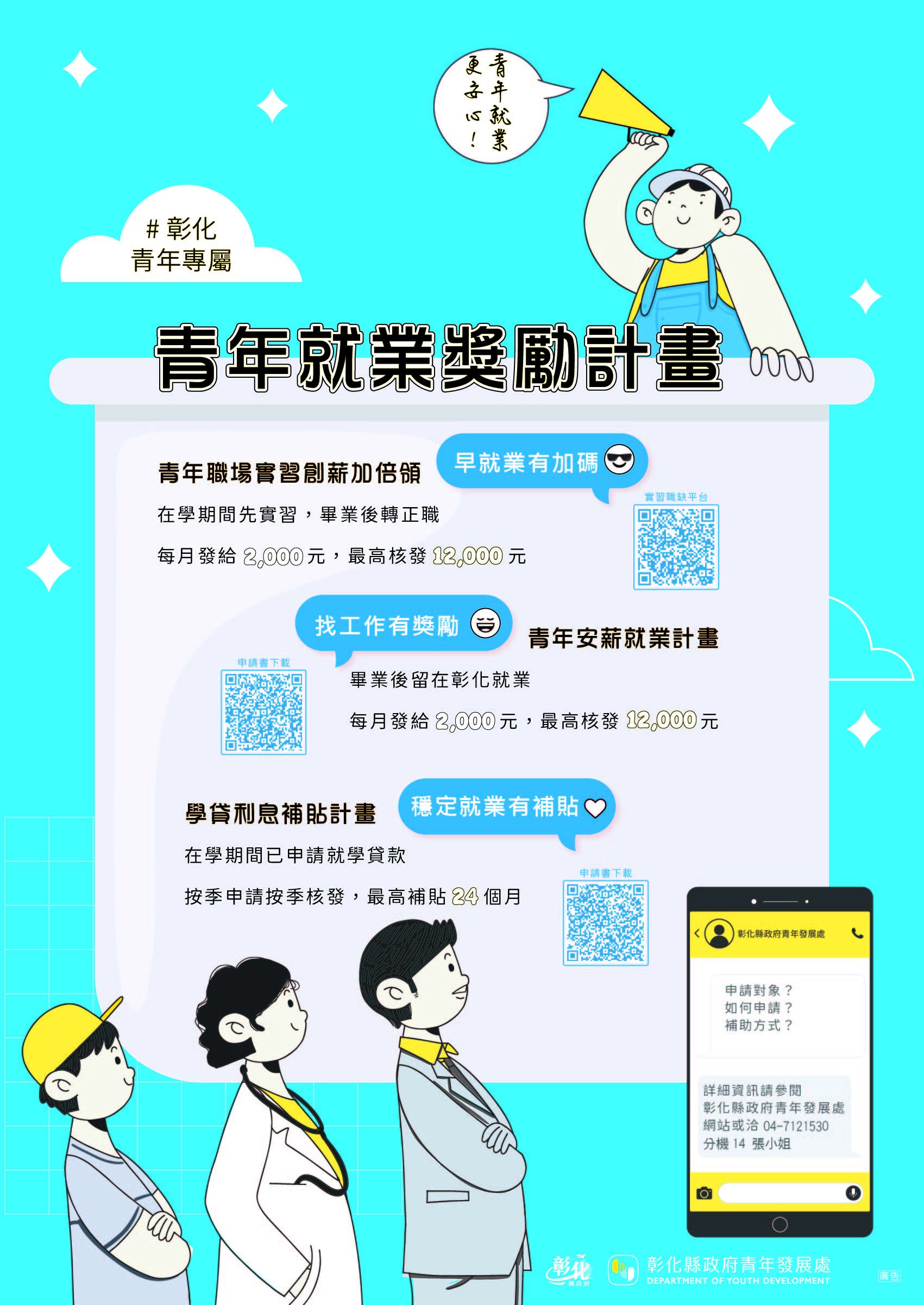 | 標題:【轉知】彰化縣政府提供"青年就業獎勵補助計畫" |
