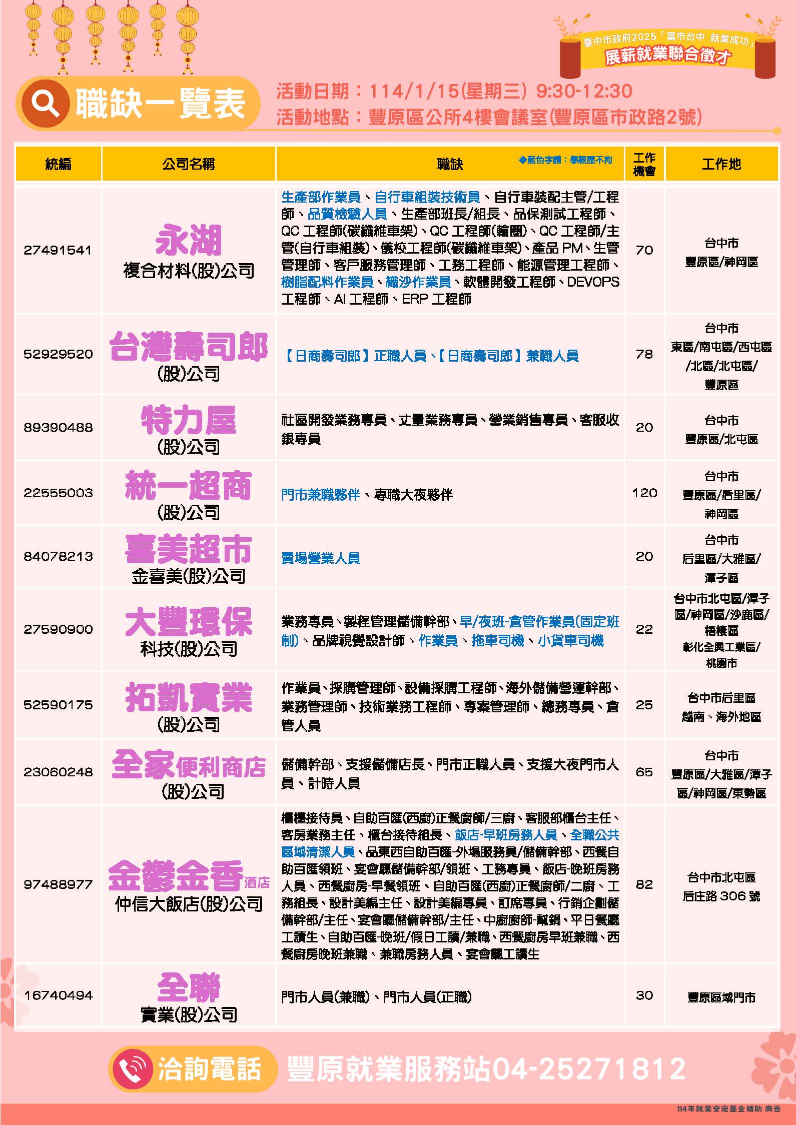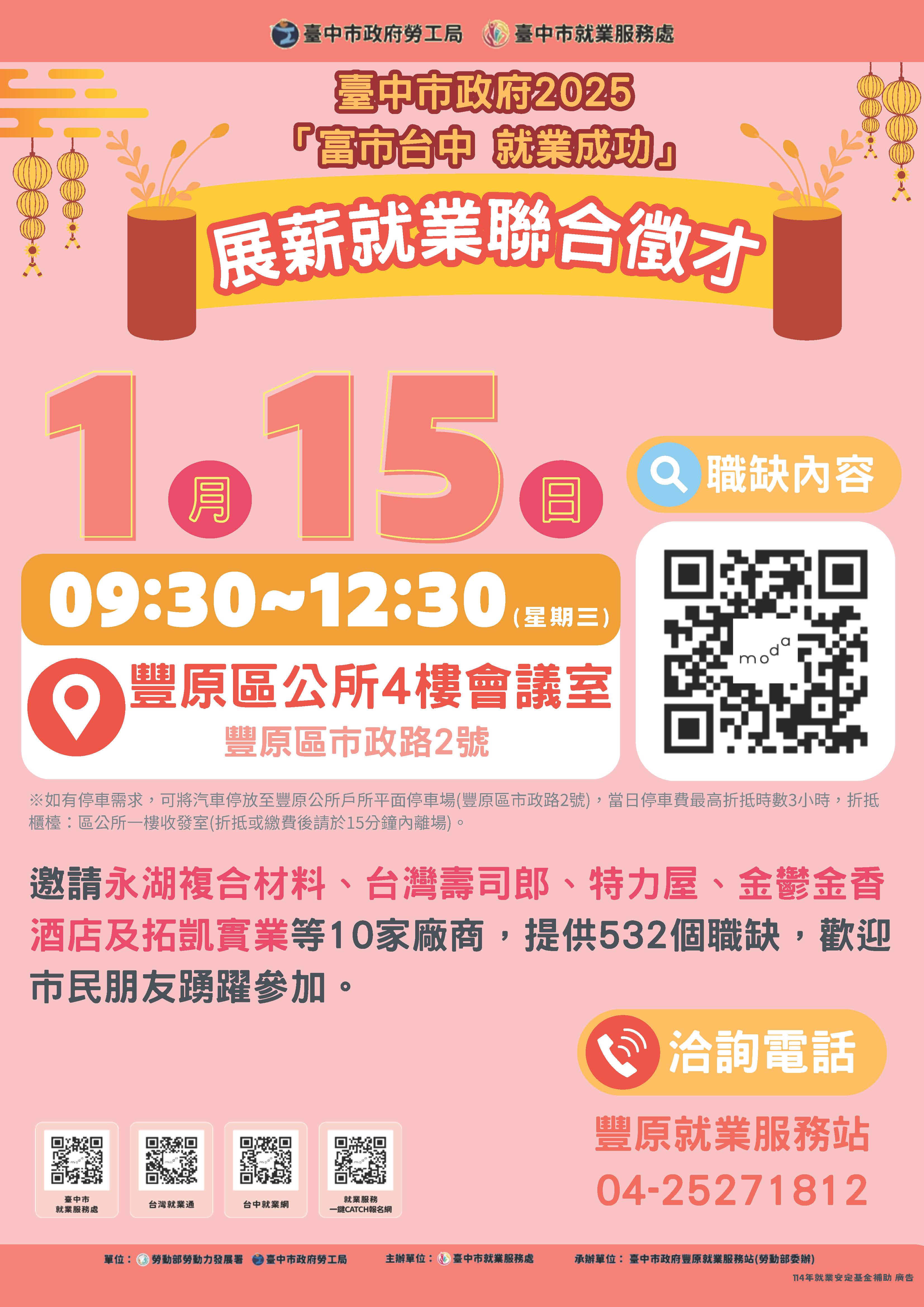 標題:【就業】臺中市政府2025「富市台中 就業成功」展薪就業聯合徵才