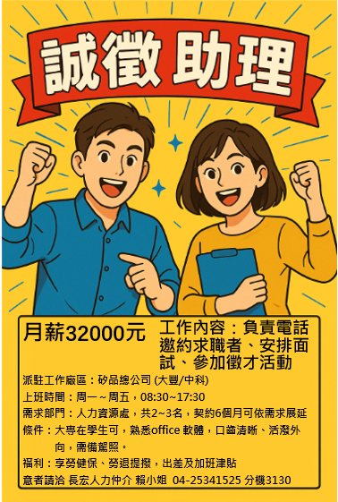 標題:【就業】矽品精密工業股份有限公司 _招募人資助理