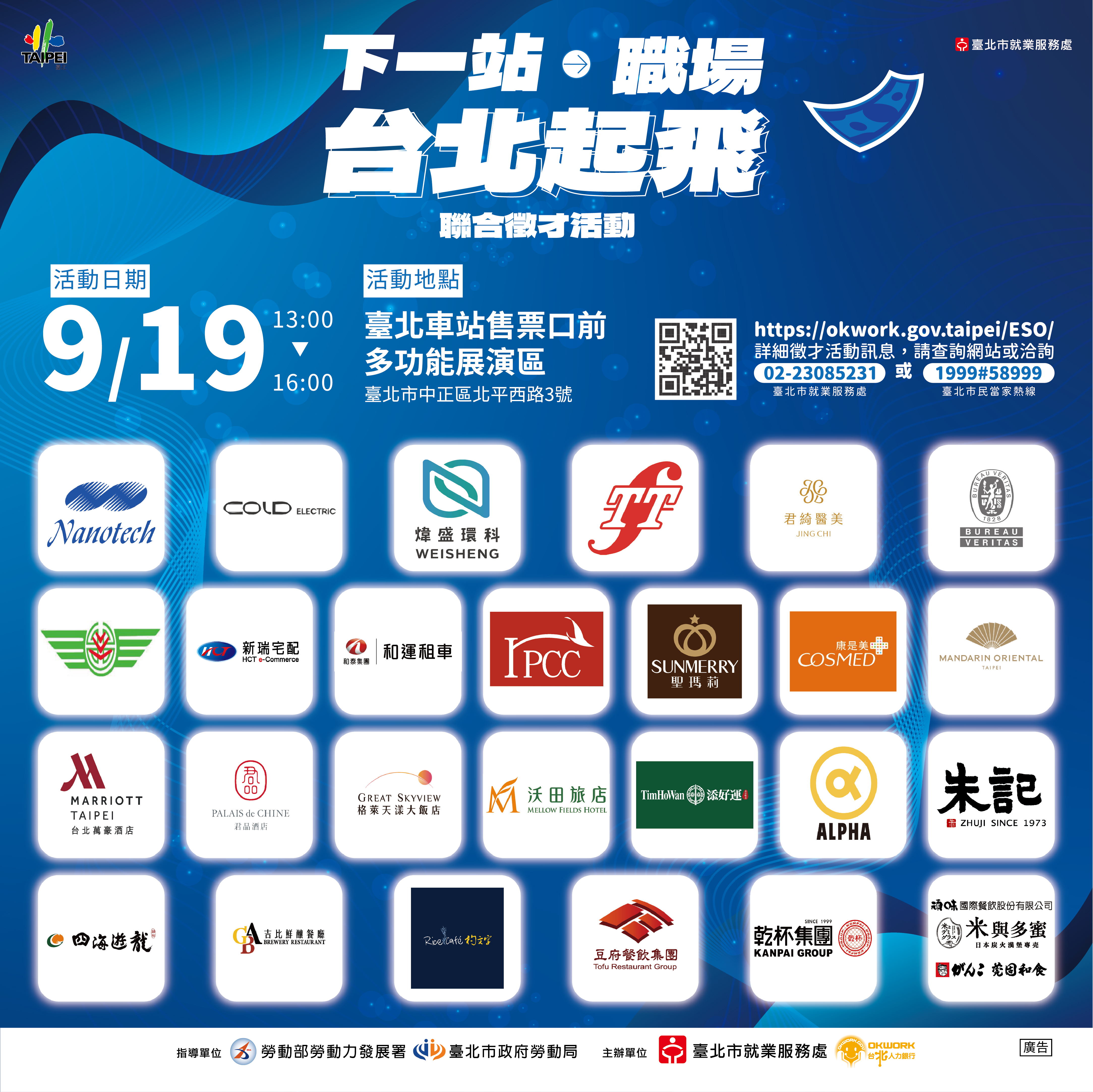 標題:[就業]臺北市就業服務處114年9月19日「下一站職場‧台北起飛」聯合徵才活動