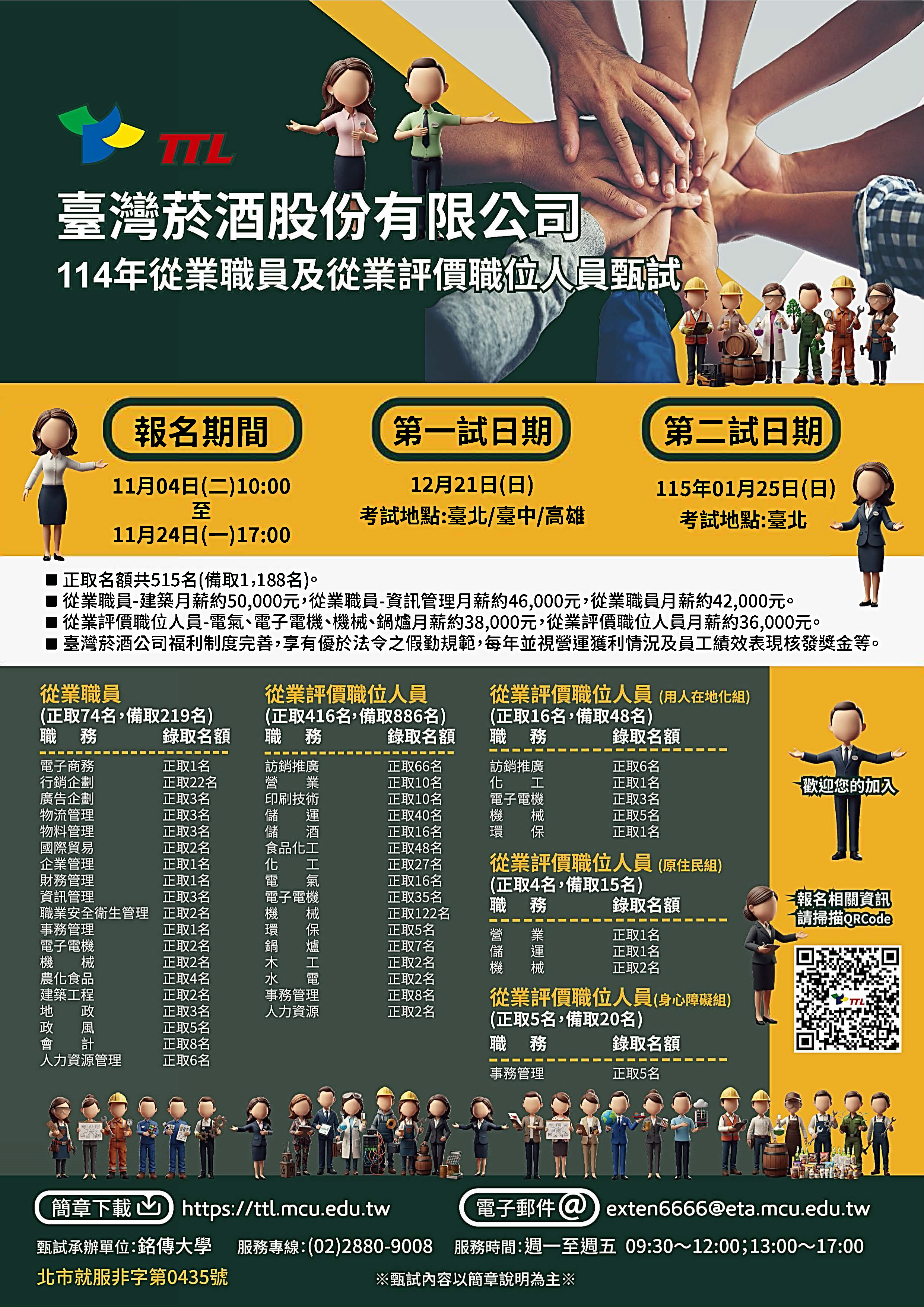| 標題:【就業】臺灣菸酒股份有限公司114年從業職員及從業評價職位人員甄試簡章 |