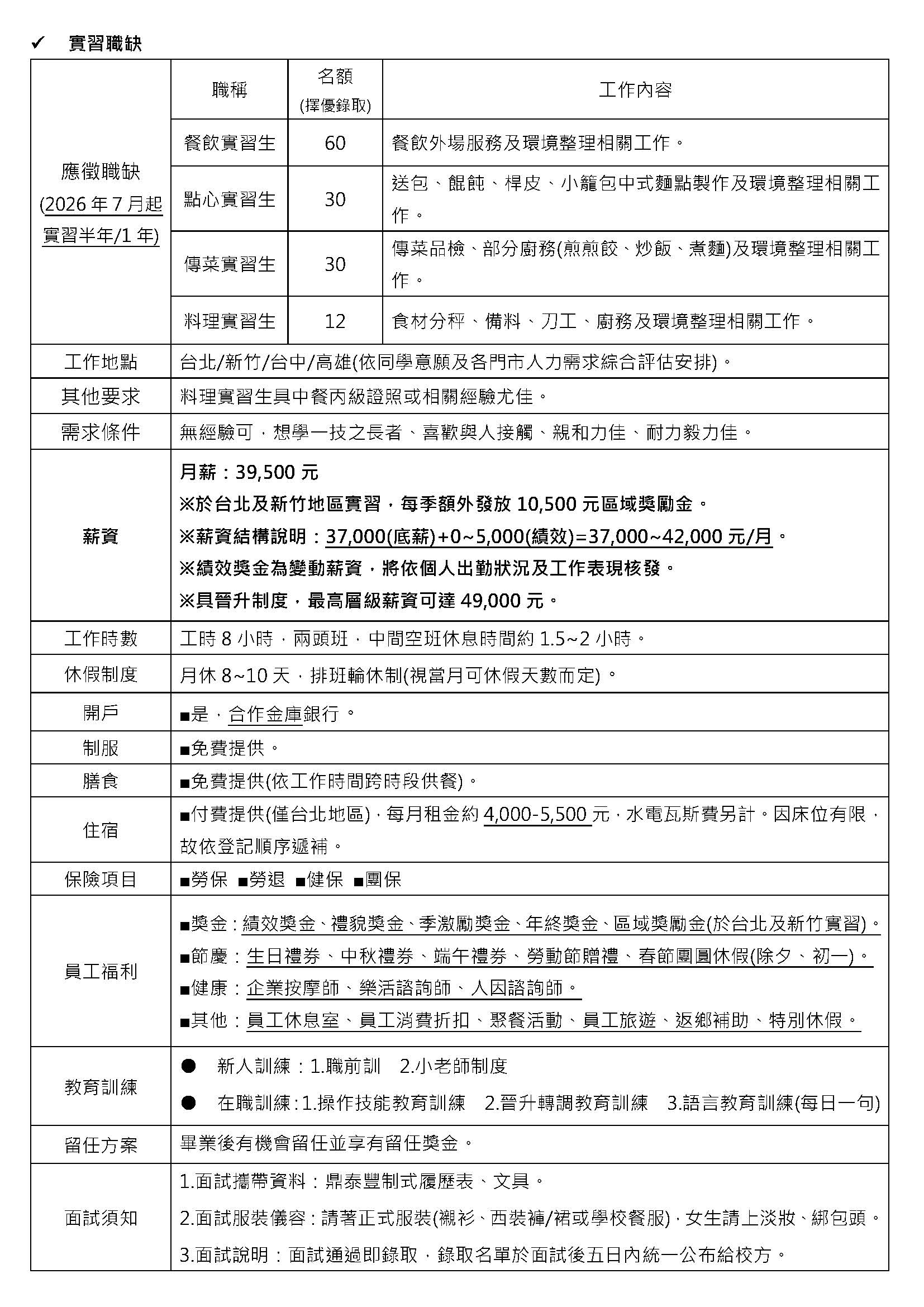 ※實習生起薪為39,500元!另享有各項獎金、免費員工餐及專屬休息室!