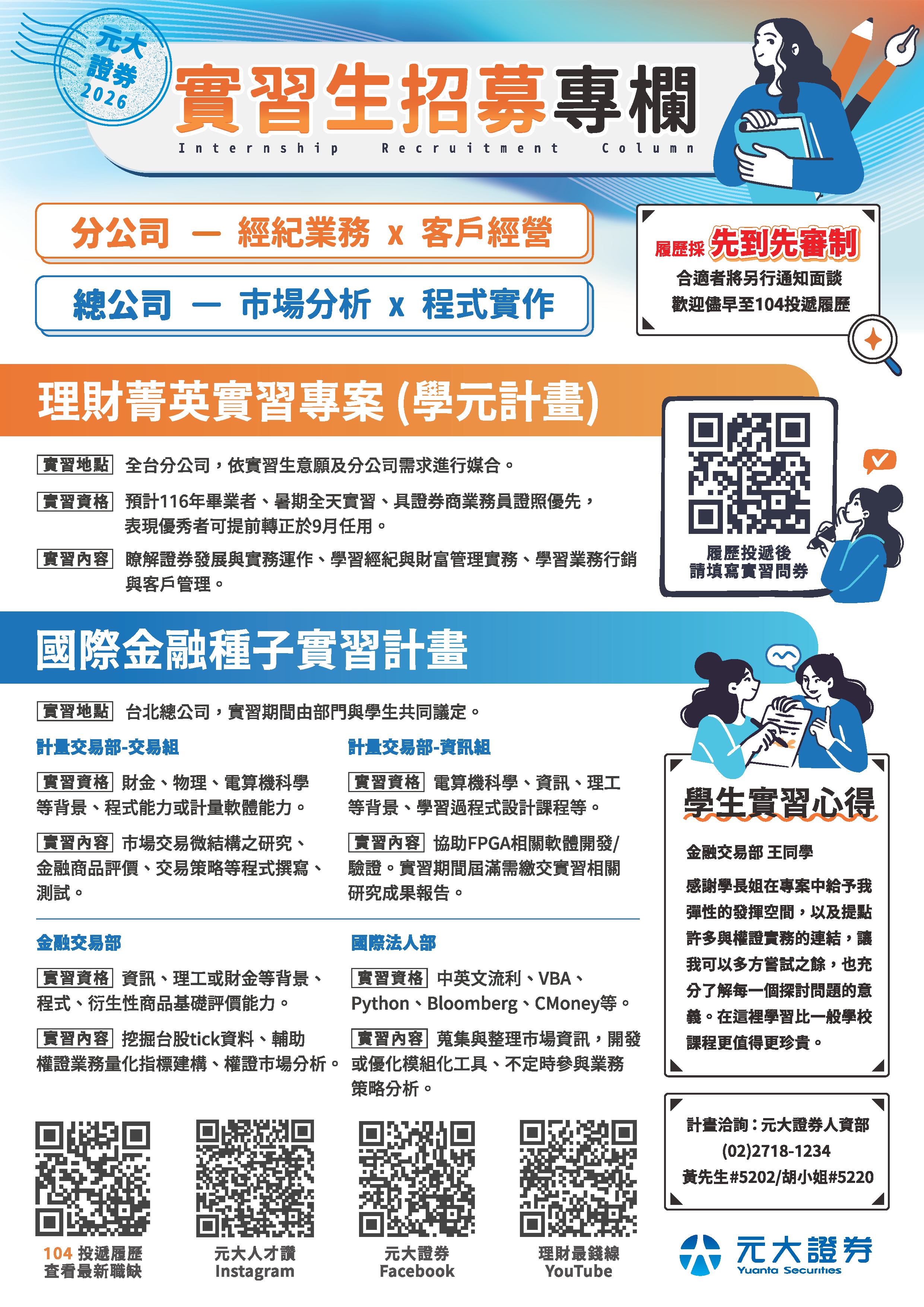 標題:【應屆畢業生職場體驗】115年度元大證券校園深耕計畫
