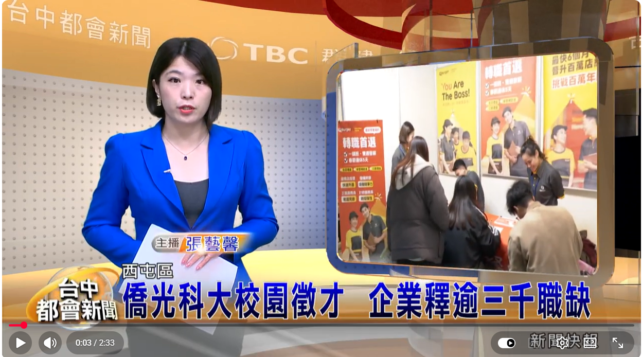 畢業季腳步逼近,台中僑光科技大學舉辦校園徵才博覽會,邀集80家企業設攤,釋出約3300個就業與實習機會。學生透過與企業面對面溝通,了解職缺需求與自身興趣是否符合,提前規劃未來職涯方向。