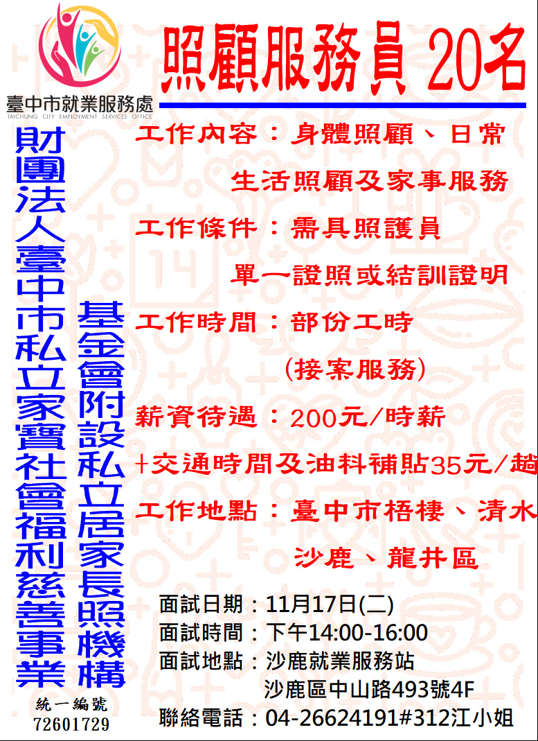 11/17(二)14-16家寶居家長照,沙鹿站4樓