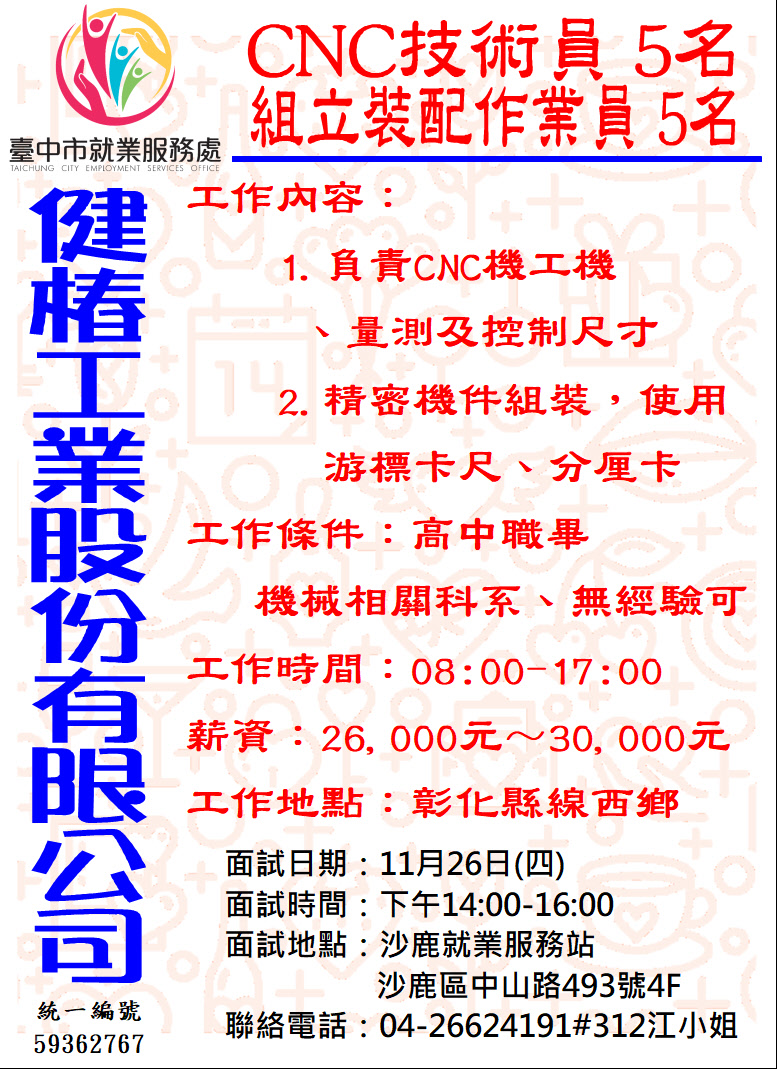 11/26(四)14-16健椿,沙鹿站4樓
