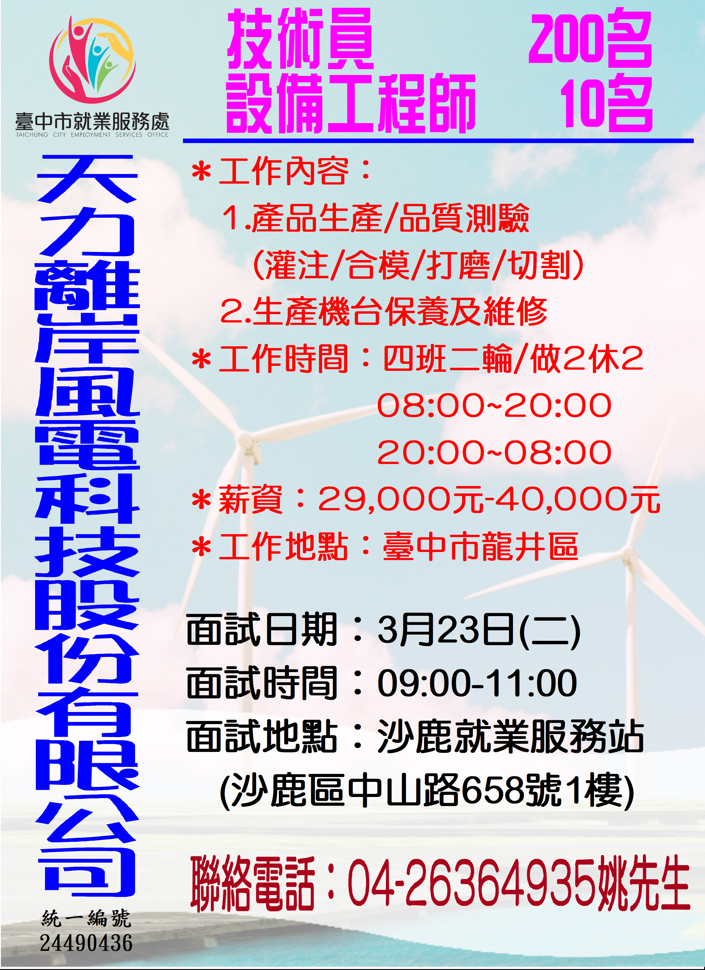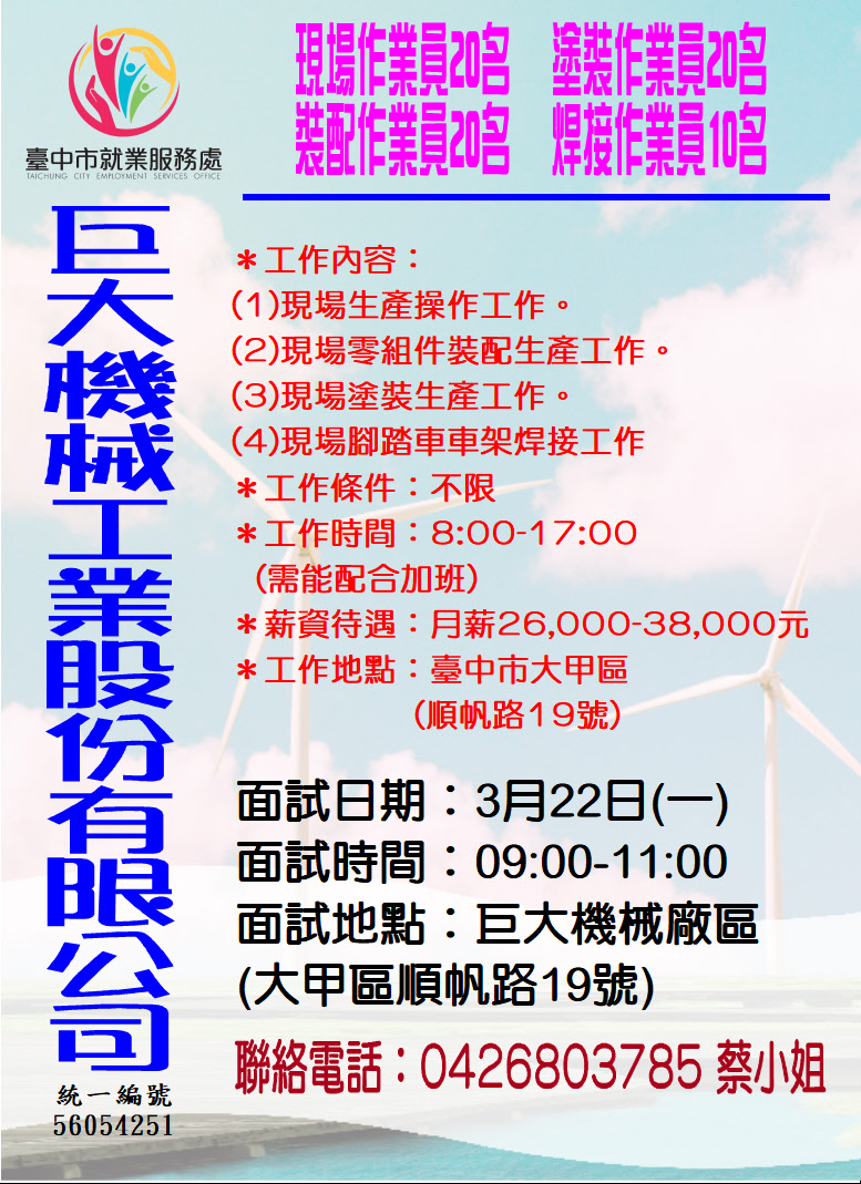 標題:台中市就業服務處宣導3月份徵才活動訊息