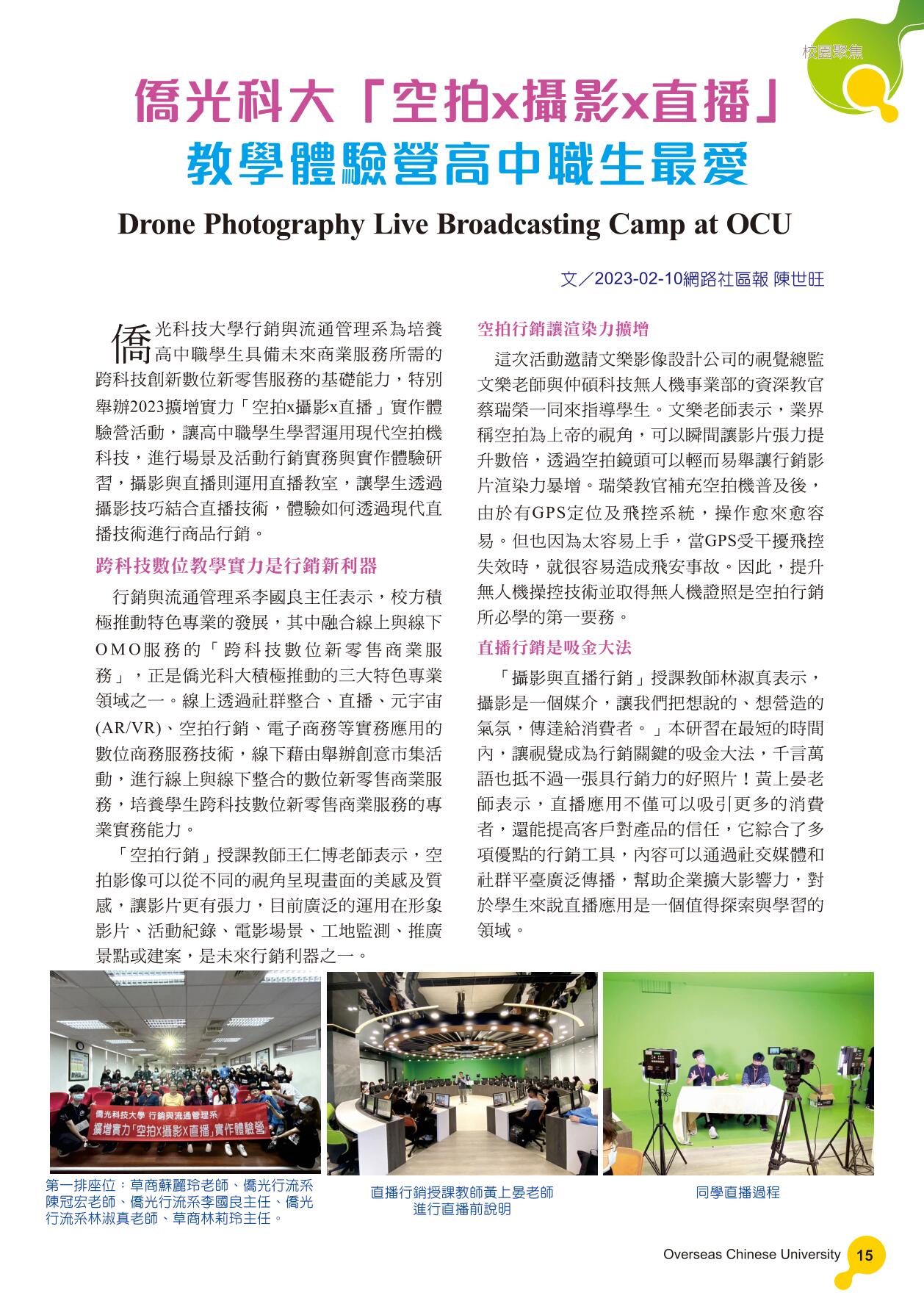 僑光科大「空拍X攝影X直播」 教學體驗營高中職生最愛
