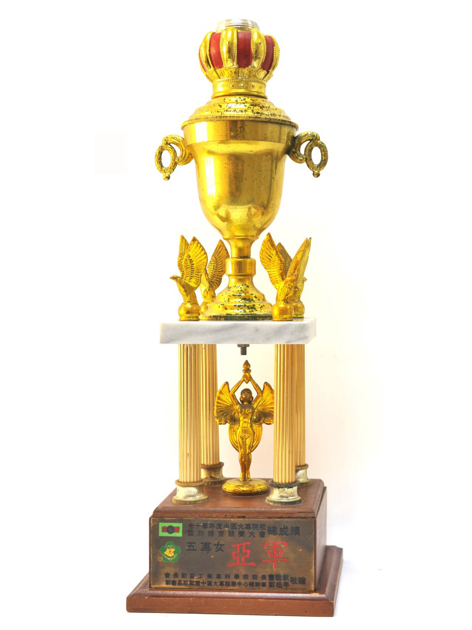 僑光文物以獎盃獎座數量最多,一座座金碧輝煌的獎盃,象徵僑光師生一次次榮耀的紀錄。獎項之中以體育運動競賽居多,既有籃球、桌球、排球、壘球、羽球、二千公尺武裝接力賽、柔道、射擊、木球,以及體育總錦標賽;此外,還有珠算、辯論、軍歌大賽、團康競賽、民族舞蹈,競賽項目多樣,可謂五育並重。尤其在民國71年、72年連續兩年蟬聯五專女子二千公尺的武裝接力賽冠軍,顯見僑光女孩不僅學藝出眾,在體能上亦令人刮目相看。